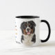 Un portrait d'un beau chien de montagne bernois est la caractéristique de deux côtés de cette tasse. Entre les deux images se trouve le texte qui décrit ce compagnon loyal et aimant, avec "le CHIEN DE MONTAGNE BERNESE" en noir en bas. Tout le texte est facilement customisé à tout ce que vous préférez afin que vous puissiez décrire votre propre ami loyal.