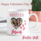Heureuse Sainte-Valentin besties pour toujours coeur photo tasse de café. Magnifique cadeau d'ami, tasse d'Heureuse Sainte-Valentin personnalisée pour vous à donner comme un cadeau à vos besties. Un design de coeur rose et rouge mignon avec un script tendance et un modèle photo de coeur est une tasse de café photo douce qui fait savoir à votre bestie que vous serez les meilleurs amis pour toujours. Facile à personnaliser avec vos propres informations. Vous pouvez trouver d’autres articles de la Saint-Valentin comme celui-ci et d’autres articles dans la Collection Coeurs de la Saint-Valentin Pink and Reds.