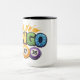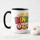 This design features the word “BINGO” crafted to look like it’s sewn from individual pieces of colorful fabric, complete with visible stitching and soft, textured edges for an authentic handcrafted feel. Three classic bingo balls sit below the lettering, while cheerful yellow rays burst from the top, adding energy and fun without overpowering the design.