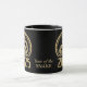 La caractéristique de cette tasse est un emblème de serpent d'or chinois de l'année lunaire. Au fond, il y a un or correspondant "2025". Entre les images identiques de chaque côté correspond le texte qui dit "Année du SNAKE". Le texte est personnalisable, vous pouvez donc le modifier ou le supprimer si vous le souhaitez. Tout est placé sur un arrière - plan noir dramatique.