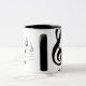 Ajoutez un message personnalisé et un nom à cette tasse moderne et élégante en noir et blanc avec des notes musicales pour créer un grand cadeau pour un instrument de musique ou un enseignant de chant ou un étudiant.