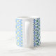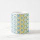 Cette tasse joyeuse présente un motif progressiste lumineux en bleu, jaune et vert. Les couleurs motifs vives enveloppent la tasse, vous donnant des motifs intéressants à méditer avec votre boisson. Les motifs comprennent des fleurs à six pétales, des étoiles, des diamants et des peignes de miel.