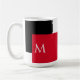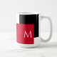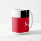 Gras et coloré mais simple dans son design de bloc de couleur minimal, cette tasse élégante a un motif de bloc de couleur rouge, noir et blanc avec votre initiale monogramme en texte blanc. Il fait un grand cadeau ou un ajout à votre collection de tasses. Personnalisez avec votre initiale désirée.