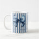 Add a touch of elegance and charm to your morning routine with this beautiful blue bow watercolor design. Set against a classic blue and white stripe background, this artwork captures the delicate beauty of a satin ribbon bow, rendered in a soft watercolor style. The thoughtful personalization space allows you to add a name or special message, making it a truly unique addition to your kitchen or a heartwarming present for someone special. Perfect for anyone who appreciates classic motifs and a touch of artistic flair in their everyday items.