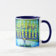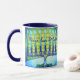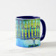 "Paix, amour et lumière." Une photo de fond illustrant une menorah d'art bleu et vert brillant, coloré, vous aide à inaugurer les vacances d'Hanoukka dans le style. Sentez la chaleur et la joie de la saison des Fêtes chaque fois que vous buvez dans cette magnifique tasse de café Hanoukka colorée. Fait un ensemble frappant de quatre tasses quand acheté avec les trois versions colorisées alternatives disponibles dans mon magasin. Et les cartes, autocollants, coussins, articles ménagers, sacs fourre - touts et autres produits correspondants sont disponibles dans ma collection "Hanoukka Colorful, Artsy Menorah". Commandez-le comme cadeau de réveil pour quelqu'un de spécial, ou même vous-même! Vous pouvez facilement personnaliser cette tasse. S'il vous plaît, envoyez-moi un message avec toute question ou demande.