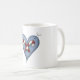 enjoy your favorite winter beverage in this primitive blue heart mug showcasing a cozy candy cane illustration. the rustic folk art aesthetic makes this a perfect companion for hot cocoa or coffee during the christmas season. this durable ceramic mug is a wonderful gift for fans of country home decor and those who appreciate a shabby chic touch in their holiday kitchenware.