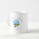 Un joli petit tour simple et classique sur la tasse-cadeau "meilleure maman jamais", cette boisson personnalisée a facile à customiser, élégant, texte voûté avec votre message personnel et un nom qui encerclent une illustration antique d'une fleur d'hortensia bleu français dans un style millénaire assez grand.