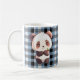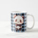 Start your day with a smile! This charming coffee mug features a super cute, cuddly baby panda set against a trendy blue and black buffalo plaid (or gingham) background.