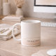 Warm neutral drinkware in pale ivory with a faint blush arc wrap and minimal Blushed Haze lettering. Designed for refined feminine kitchens and office desks, it pairs beautifully with light wood, marble, or cream stone surfaces for morning coffee, tea breaks, and styled shelf displays.