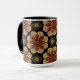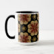 Cette tasse de café ou de thé boho spectaculaire est parfaite pour votre maison de campagne ou de ferme. Le motif présente des médaillons dans les teintes rouille et ocher sur l'arrière - plan noir. Commandez un bouquet pour votre prochaine fête du thé ou réunion du club de lecture. Recherchez les cuisines et les repas correspondants dans la Collection. Cette conception provient de tuiles réelles, du fabricant de tuiles de l'Oregon Fay Jones Day.
