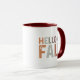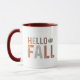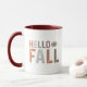 Ce design sur le thème de l'automne accueille chaleureusement la saison d'automne avec l'expression "Hello Fall". Les mots sont arrangés dans une disposition simple mais visuellement attrayante, avec "Hello" placé au-dessus de "Fall". Chaque lettre de l'expression est présentée dans une police grasse et bloquée, avec une texture légèrement désespérée, lui donnant un look rustique et patiné qui complète le thème automnal.