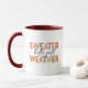 Cette oeuvre d'automne pleine de vitalité capte parfaitement l'essence douillette de la saison avec sa typographie ludique et sa palette de couleurs chaudes. Le design comprend l'expression audacieuse "Sweater Weather" en grandes lettres de couleur qui alternent dans les tons orange, beige, vert et marron, évoquant les couleurs changeantes des feuilles d'automne. L'expression "bonjour chute" est nichée entre les deux, écrite dans un script fluide et cursif qui ajoute une touche d'élégance et de chaleur au design.