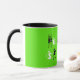 Bonjour Spring mignonne texte de dessin noir et blanc sur vert clair Arrière - plan de café Mug