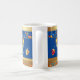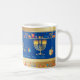 Joyeux Hanoukka Party Belle Décoration, Fête Juive, Café Mug. Arrière - plan juif de Holiday Hanoukka avec les symboles traditionnels de Chanukah - dandelles en bois (dessus filant), beignets, menorah d'or, bougies, étoile de David et lumières brillantes papier peint motif. Décoration de l'événement du Festival Hanoukka. Jérusalem, Israël. Accueil > Cuisine et restauration > Boissons > Mugs et tasses. Conception avec modèle texte. Personnalisez-les en ajoutant ou en modifiant du texte.