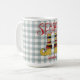 Fun Holiday Season tasse à café avec un texte "Bonnes Fêtes" à la main festif avec une paire de chaussures elf Christmasy et de la place pour ajouter personnalisation sur un arrière - plan plaid gris et blanc.