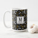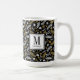Black and gold monogram mug featuring flowers and leaves. Easily personalize this mug to create a unique custom gift for your family, friends or yourself.