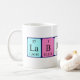 Lab Honey a été décrit comme La B H O Ne Y (Lanthanum Boron Hydrogen Neon Yttrium) sur une tasse pour le scientifique qui fait partie de la meute.