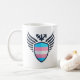 Profitez de votre boisson préférée tout en montrant votre soutien avec notre mug de bouclier de fierté transgenre. Ce design minimaliste mais puissant présente un bouclier élégant aux couleurs de la fierté transgenre (bleu, rose et blanc), symbolisant la résilience, l'unité et l'authenticité. Sans mots, le design parle de lui-même, faisant une déclaration audacieuse mais subtile de soutien à la communauté transgenre. Parfait pour le café, le thé ou le cacao chaud tous les jours, cette tasse est une façon significative de célébrer et de soulever la fierté trans.