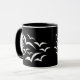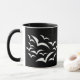 Cette tasse à rondelles noir et blanc présente une collection d'images simples de chauves-souris volant ensemble dans un motif de nuage. Les chauves-souris sont blanches et l'arrière - plan est noir. Les enfants adoreront ce design mignon.