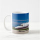 Une belle tasse avec l'image d'un Bombardier Challenger à l'aéroport, soutenue par un ciel bleu profond. Un cadeau parfait pour tous les amateurs d'avion.
