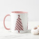 Mug dans une silhouette classique d'un sapin de Noël en rose pastel fraise, à motifs avec des rayures de bonbons chocolat foncé