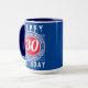 Tasse à 30 ans. Couleurs vives et design audacieux. Tasse d'anniversaire numérotée. Le design se répète de part et d'autre. 30 ans.