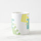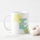 Créez une tasse à café cool pour lui avec un concept graphique moderne, avec votre propre nom et vos initiales (couleurs pastel jaune, bleu et vert)
