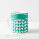 Un élégant café Mug, avec un motif en houndstooth en vert émeraude et blanc tendance. Il y a un bandeau en haut du motif que vous pouvez personnaliser avec un nom ou un texte - ou laisser vide.