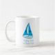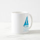 Cette tasse est dotée d'un voilier bleu aquarelle sur un arrière - plan blanc. Le voilier a un script en dessous qui dit "Voile vers les jours meilleurs." Le message peut être personnalisé en modifiant le message dans la zone modèle.