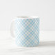 Une chic Mug à café blanc, avec un motif plaid en diagonale en bleu ciel et blanc qui coordonne avec les motifs Roses de chien. Photo d'un motif numérique de Judy Adamson, appartenant à la collection Posh & Painterly "Rosy Posy".