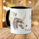 Derrière ce beau portrait d'aquarelle d'un Chien de Borzoi sur cette tasse se cache un joli bouquet de rose blanc. Le bouquet et l'image de chien sont ornés d'une tourbée de faux confettis de parties scintillant. L'image est imprimée sur deux côtés, avec votre texte personnalisé en noir au bas central entre les images. Parfait pour tous ceux qui ont perdu leur coeur à la suite d'une hache de Borzoi. *Remarque : l'image est imprimée et ne contient pas de parties scintillant réelle.