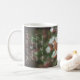 Tasse florale avec une photo d'une magnifique branche de prune en fleurs sur un arrière - plan vert foncé. Une touche de vibes printanières à votre décor de cuisine, un cadeau de saison idéal pour vos proches. Inspirez-vous et amenez la fraîcheur de la nature dans votre vie ! Vous pouvez supprimer le texte "Faites le plan de votre année entière au printemps et le plan de la journée entière le matin" ou le remplacer par votre propre message (cliquez sur "Personnalisez ce modèle"). Pour d'autres modifications, cliquez sur "Modifier la conception".