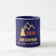 Composition Extraordinaire d'un homme montagnard ou skieur de descente contre l'arrière - plan du cercle coloré. Un texte "BRECKENRIDGE 39°28'48"N 106°4'1.2"W - COLORADO, SKIING ME HAPPY" de couleur jaune doré fait le tour de l'image. Image silhouette de montagnes et d'un épinette, les textes "2024", "CHRISTOPHER", "La vie est meilleure sur les pistes !" sont situés au milieu. Toutes les images et textes sont personnalisables. Vous pouvez facilement les modifier en fonction de vos besoins et de vos souhaits. Belle tasse de café ou de thé pour la maison ou le bureau. Le design des sports d'hiver. Les stations de ski populaires aux Etats-Unis d'Amérique. Cette version est destinée aux arrière - plans de couleur noire ou noire. La version pour les arrière - plans blancs ou de couleur claire est également disponible. Les versions respectives pour les femmes vous attendent. Vous pouvez transférer cette conception à une variété de produits. Passez une bonne pause café !
