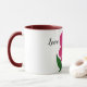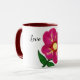 Jolie fleur rose aux couleurs vives avec centre jaune et feuilles verts, avec une pointe de ciel bleu. L'amour est écrit en écriture noire. Oeuvre originale © TamiraZDesigns.