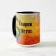 Ce dragon en spirale multicolore fait une déclaration puissante sur cette tasse avec la légende "Dragon brew". La toile de fond est également multicolore avec des tons orange et rouge pour accentuer le feu. Peut être gardé comme il est avec le mot dragon brw ou peut être personnalisé pour le rendre unique à votre propre.