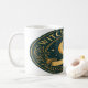 Un emblème classique de lune et d'étoiles à la texture vintage et chaleureuse, parfait pour des ambiances douillettes et sorcières. Ajoutez un nom sous l'insigne pour une tasse magique prête-cadeau.