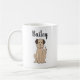 Un mignon Brown Fluffy whimsical amusant caricature-souriant chien heureux. Ce modèle personnalisé porte le nom d'un animal de compagnie en calligraphie. Une tasse de café amoureux des chiens design tous les jours. Un grand cadeau pour votre amoureux des animaux de compagnie.
