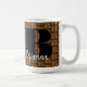 Cette tasse à café moderne brun, noir et blanc est audacieuse et moderne. Entrez votre initiale pour créer un arrière - plan motif géométrique classique. Entrez ensuite votre initiale avec votre nom pour une tasse monogramme qui est parfaite pour un usage professionnel ou personnel.