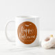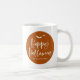 Célébrez la saison éffrayante avec chaque gorgée en utilisant cette tasse d'Halloween personnalisable. Dotée de "Happy Halloween" en brosse blanche et en gras sur un riche arrière - plan orange brûlé, cette tasse est parfaite pour votre café, cacao ou thé du matin. Ajoutez votre nom, votre nom de famille ou une phrase d'Halloween amusante pour une touche personnelle. Il fait un ajout festif à votre décor de cuisine d'automne ou un grand cadeau de saison. Élégant, durable et parfait pour des soirées d'automne ou d'Halloween.