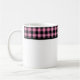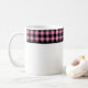 This ceramic coffee mug is shown with a lovely black and pink color buffalo plaid.