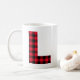 Une lettre de police moderne en gras L avec une couverture de motif de chèque de bûcheron traditionnelle. Vous pouvez créer vos propres cadeaux de vacances pour votre arrière grand-parent. Vous pouvez remplacer l'image graphique en vichy par votre propre photo. Customisez cette tasse de café monogramme avec un nom de famille ou un autre texte. Consultez la catégorie Monogrammes par lettre pour obtenir d'autres initiales.