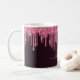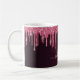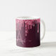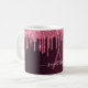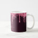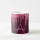 Une tasse élégante, girly et glamour. Faux parties scintillant couleur cerisier rose foncé gouttes. Arrière - plan profond et foncé de dégradé bordeaux. Personnalisez et ajoutez un nom et une lettre monogramme. Le nom est écrit avec un script de style moderne écrit à la main. Lettres de couleur rose pâle et bordeaux.