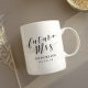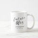 Mug à café personnalisé conçu pour la future mariée avec un design de calligraphie manuscrite moderne et stylé "future Mme". Personnalisez avec le nom et la date.