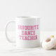 Le mug cadeau de professeur de danse préféré est l'idée cadeau parfaite pour un professeur de danse. Un cadeau de reconnaissance pour un professeur ou un cadeau de Noël pour votre entraîneur de danse, professeur de ballet ou tout type de professeur de danse.