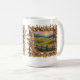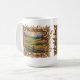 Cette tasse à café a un cadre doré qui contient une peinture de paysage.