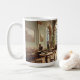 Un cadeau parfait pour les amateurs de voyage et de café. Ce tableau représente une scène quotidienne dans un café tranquille de Saint-Pétersbourg, capturant son charme serein. Quelques clients sont assis sur des tables en bois, dégustant tranquillement du café et des pâtisseries, immergés dans leur calme. De grandes fenêtres voûtées encadrent une vue pittoresque sur les rues historiques de Saint-Pétersbourg, avec des façades ornées baignées de douces teintes pastel. L'intérieur du café harmonise un mobilier minimaliste avec des détails vintages, notamment des moulures complexes et des plantes en pots luxuriants. Les tons chauds de bois, de vert muet et de blanc crémeux dominent la palette, tandis que la douce lumière naturelle filtre à travers les fenêtres, renforçant l'atmosphère calme et accueillante qui reflète l'élégance intemporelle de la ville.