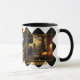 Tasse photo personnalisée avec 3 de vos propres photos (ou scènes d'Halloween éffrayantes), encadrée par un design noir et blanc classique. Avec vos textes drôles (ou autres) personnalisés. Grand comme un cadeau pour un Halloween ou un amoureux des chats.