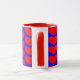 Un coeur rouge vif avec un fond bleu qui est lumineux et coloré. C'est sur un MUG CAFÉ.