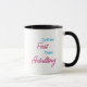 Café D'Abord, Puis Adulte. Punk gothique alternative jolie femme dans un mohawk avec des accents rose et bleu et une citation de café drôle.