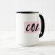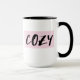 "Le Cosy rose, poka dot coffee mug", est une mignonne tasse de café personnalisée pour les jours froids. Il présente du texte noir sur un fond rose avec des points blancs, parfait pour les saisons d'automne et d'hiver.